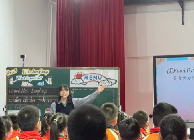 竞赛期间,王瑶老师以四年级上册《Unit 3 I like dumplings》为课题展开教学。课堂上,她紧扣“日常美食”主题,以“班级美食派对筹备”为主线,通过盲盒识食材、听力猜猜乐、小组调查等趣味活动,引导学生掌握食物词汇,熟练运用“I like ……”核心句型交流饮食喜好。教学环节层层递进,既落实了听说读写训练,又融入了健康饮食理念,充分展现了以生为本的教学理念,赢得评委一致好评。