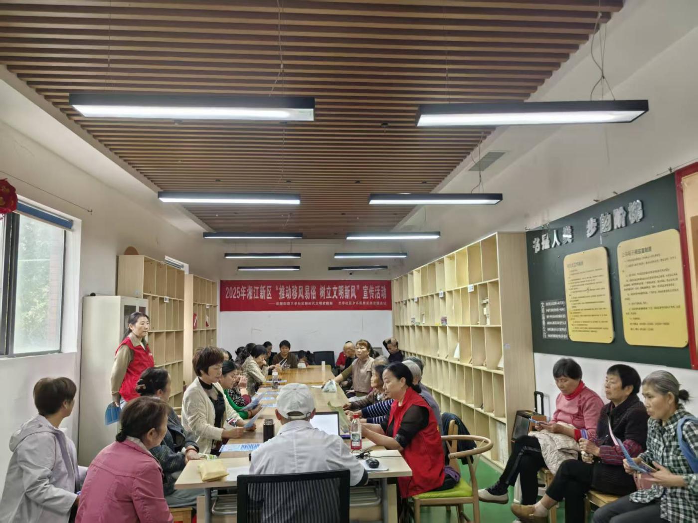 活动中,志愿者用通俗易懂的语言从“引领文明新风”“移风易俗树新风”“孝善敬老”等方面,引导居民婚事新办、喜事简办、健康生活,鼓励居民转变思想观念、破除陈规陋习,争做文明新风践行者。随后,邀请湖南妇女儿童医院戴承国主任医师,为辖区老年人送上“家门口”的中医服务。活动现场为辖区居民提供免费健康咨询、把脉问诊、中医推拿、血压检测、血糖测量等服务。