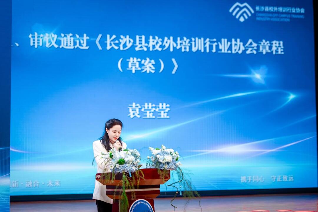 长沙县校外培训协会成立,会员单位代表宣读协会章程。