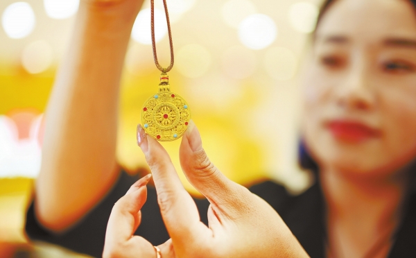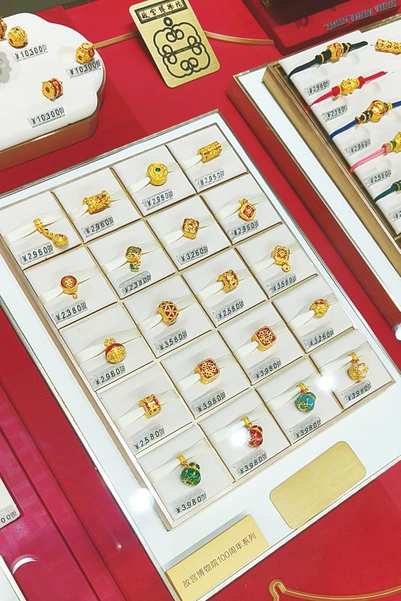 10月15日,省内某珠宝连锁店,消费者在展示自己选购的金器。严钦龙 摄(湖南图片库)“故宫博物院100周年”系列金饰一枚3580元、一个生肖小挂坠1980元、一条手链5620元……店内“一口价”金饰种类繁多,款式新颖时尚,或可爱或优雅,甚是讨人喜欢,价格少则1000元出头,多则近万元。