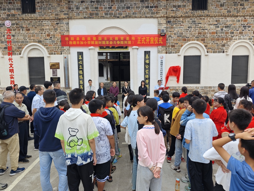 华声在线10月17日讯(通讯员 雷新龙 马国娇)2025年10月15日,桂阳县浩塘镇丰加小学爱国主义教育基地举行开放仪式。市、县相关领导、专家,湘南游击队第五支队后人代表,师生、村民代表等100余人参加了活动。这标志着桂阳县新增一处重要的红色文化教育阵地,为全县干部群众和青少年学习革命历史、传承红色基因提供了生动课堂。