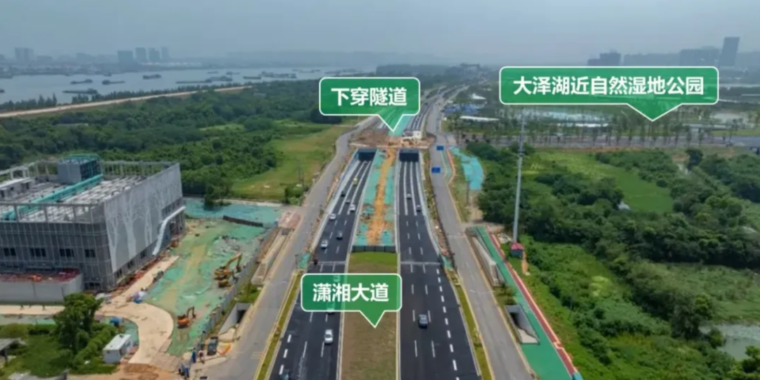 片区路网也在加速完善:大泽湖环湖路与湿地公园同步通车,标志片区“U型路网”建设取得突破,串联南北片区并无缝衔接潇湘景观道;潇湘北路快速化改造的环湖路节点通车,月亮岛路节点于10月初实现主线通车,全线快捷化改造建设即将收官,进一步提升地面交通效率。