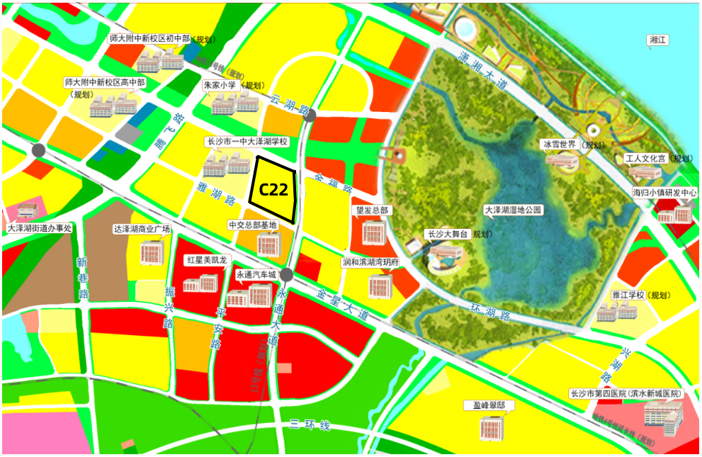 此外,C22地块周边最近的小区有长沙中交城、润和大泽湖、运达大泽湖。