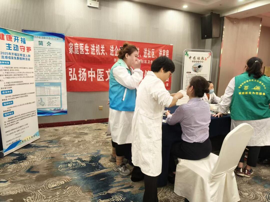 华声在线10月21日讯(通讯员 胡攀婷)为深入推进国家基本公共卫生服务落地见效,把健康关怀送到职场人身边,2025年10月20日,长沙市开福区通泰街街道社区卫生服务中心组织家庭医生团队走进万代大酒店开展免费义诊咨询活动,同步开设中医义诊专区,以专业服务为企业职工筑牢健康防线,取得了良好的社会反响。