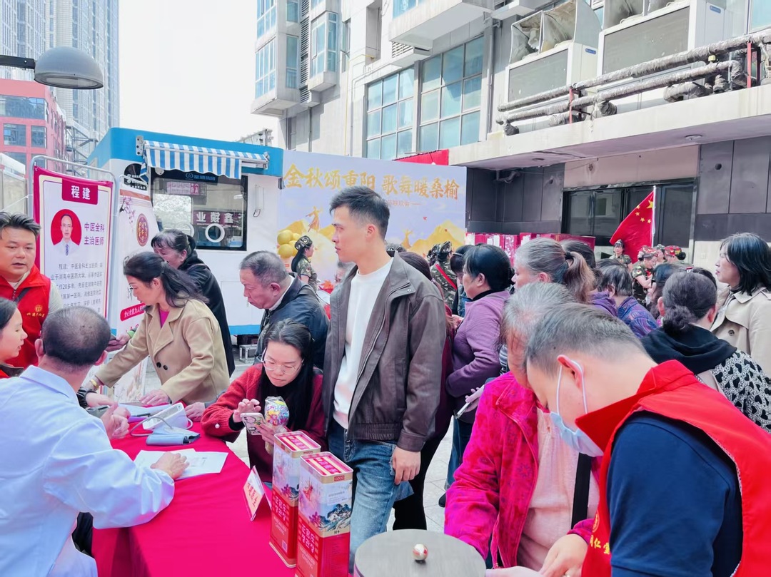 表演结束后,手工制作环节温馨开启。茱萸香包DIY、非遗烧蓝等体验项目,让老人们在动手实践中感受传统工艺的魅力,现场欢声笑语不断。此外,社区还设置了社保、医保政策宣讲,免费体检及创意留影区,为老年朋友们提供贴心服务。