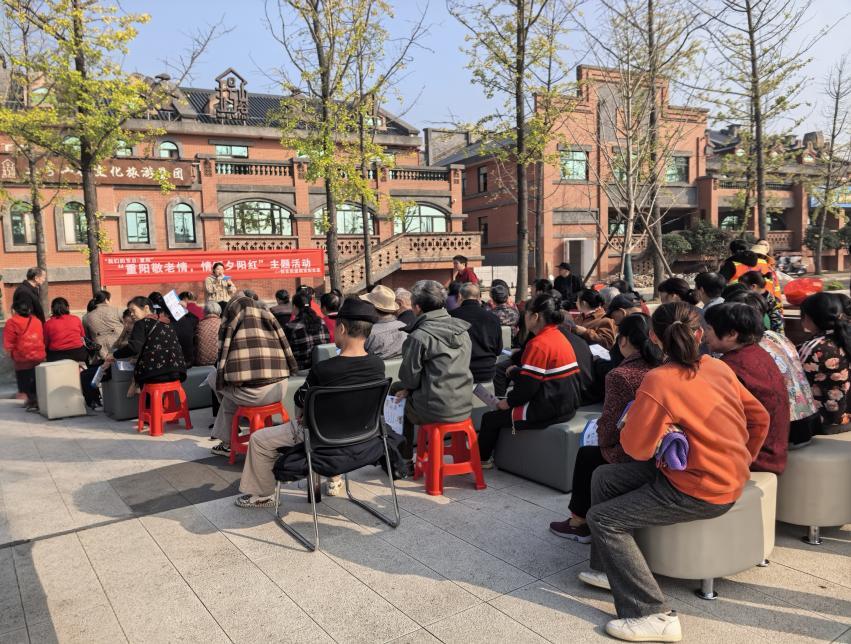 冬日和煦的阳光洒在地上,安宁祥和的氛围让人动容。不一会儿,铜官街社区休闲广场就聚集了许多参加活动的中老年人,大家亲切地拉着家常,互相问候。伴随着悠扬的萨克斯声,活动拉开序幕。“在这满载丰收喜悦的美好时节,我们一同庆贺重阳节的到来,祝大家健康长寿、阖家安康!”铜官街社区联点组长给老年朋友们送上了真挚的祝愿,希望他们能发挥余热,为社区建设提供智慧和力量。“重阳节有什么习俗?”“重阳节制作香囊的作用是什么?”有奖问答环节将气氛推上了高潮,大家争先恐后举手进行互动,广场上欢声笑语不断。