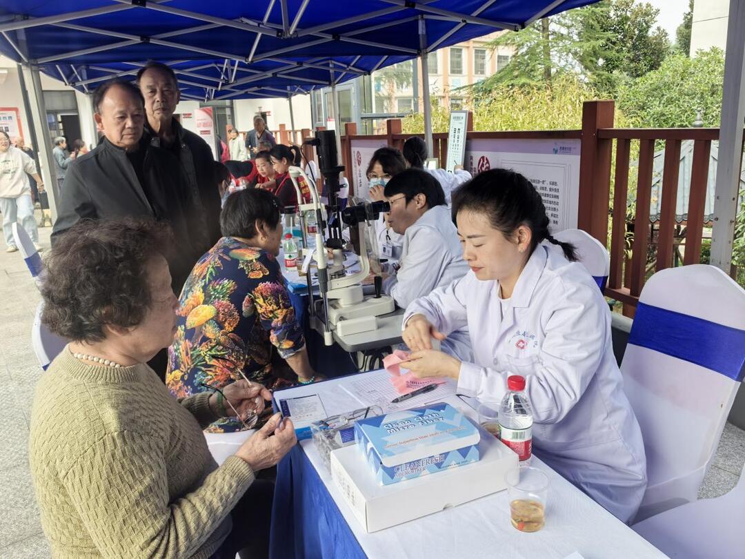 志愿服务区中,爱心义诊成为最受居民欢迎的项目。高塘岭街道第二卫生院、望城区恒康医院(退役军人优待定点医院)分别派出专家团队,提供老年病、内科、眼科、骨伤科等多科室诊疗服务。其中,恒康医院还推出免费刮痧、艾灸、贴耳穴等中医特色治疗,并为老花眼人群赠送老花镜,让居民在家门口就能享受到专业、便捷的医疗服务。