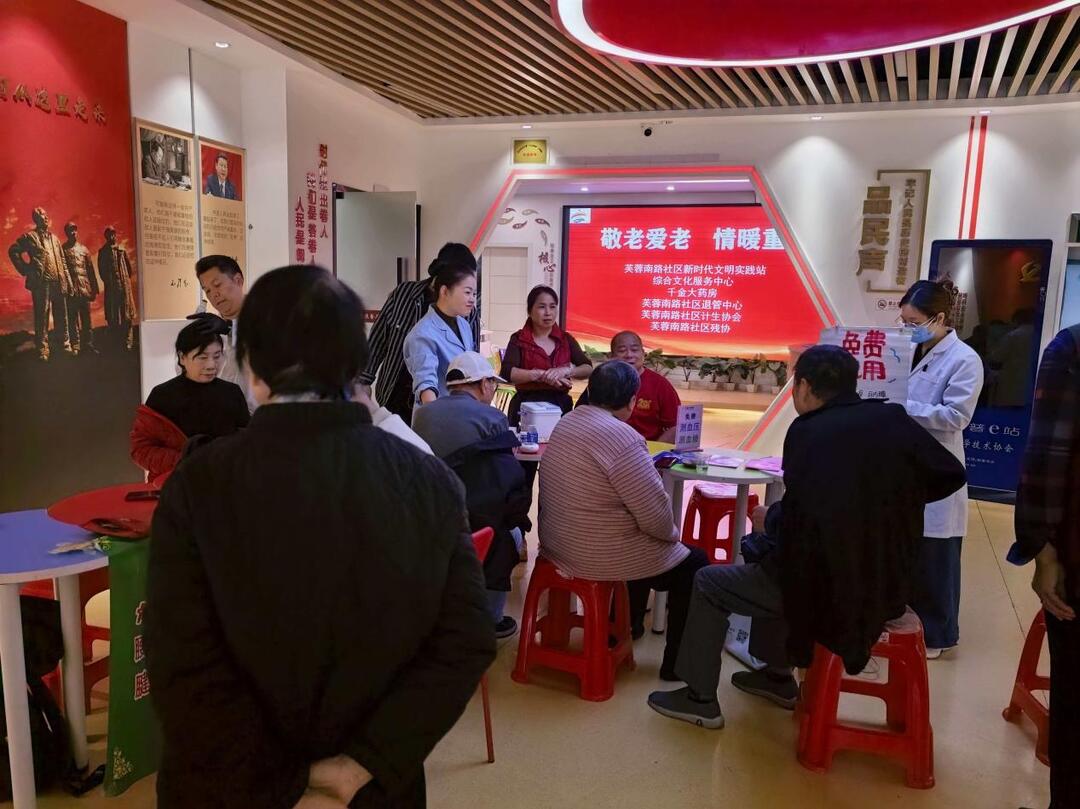 华声在线10月29日讯(通讯员 王莹至)为弘扬中华民族敬老爱老的传统美德,在重阳佳节来临之际,10月29日上午,芙蓉南路社区新时代文明实践站、社区退管中心、社区残协、社区计生协会联合辖区爱心单位千金大药房,在社区一楼大厅精心开展了“敬老爱老 情暖重阳”主题活动,为辖区网格内中老年人送上了一份贴心的健康关怀。