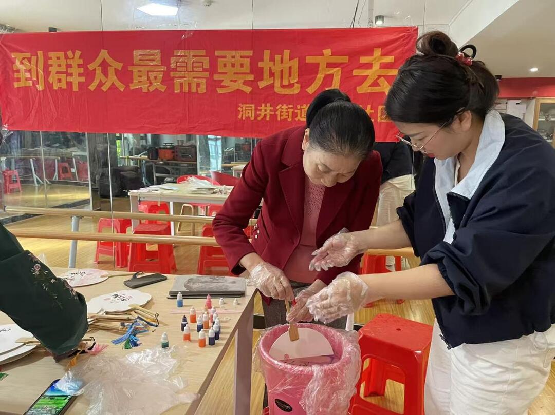 工作人员先向老人们介绍了漆扇的历史渊源、艺术价值,并耐心地为老人们讲解漆扇制作的奥秘,从色彩的搭配到扇子入水的微妙技巧,一一详细示范,老人们全神贯注地聆听,眼神中满是对这古老传统工艺的好奇与热忱。