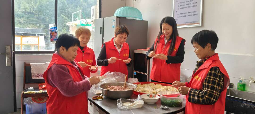 活动当天,治湾村村委会院内暖意融融。一大早,村干部和志愿者就忙着采购食材、打扫场地,为活动做足准备。老人们陆续来到现场,大家围坐在一起,像家人般拉起了家常。志愿者们耐心倾听老人们讲述过去的生活趣事、分享如今的幸福日常,还主动询问老人们的身体状况和生活需求,叮嘱他们注意秋冬季节保暖,有困难及时向村里反映。亲切的话语、真挚的关怀,让老人们脸上洋溢着幸福的笑容。