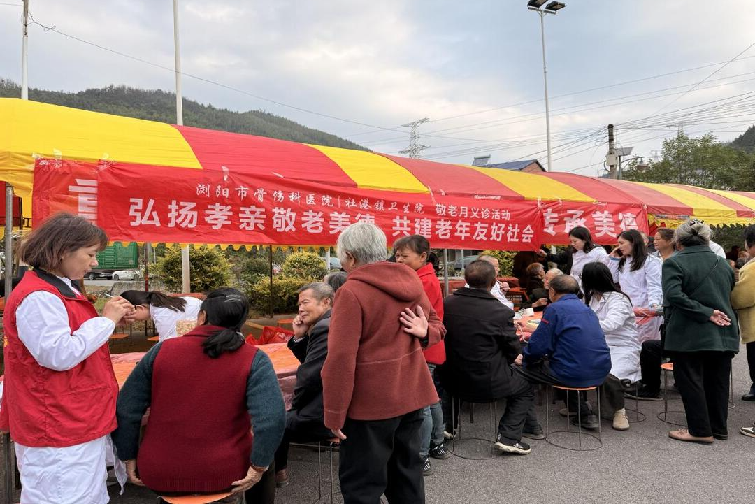 华声在线10月29日讯(通讯员 吴昌磊)岁岁重阳,情暖人心。为弘扬中华民族“尊老、敬老、爱老、助老”的传统美德,关爱老年人的身体健康,10月29日上午,受浏阳市社港镇周洛村村“两委”邀请,浏阳市骨伤科医院(社港镇卫生院)组建医护小队,在周洛村村部举办了“弘扬孝亲敬老美德 共建老年友好社会”为主题的敬老月义诊活动,为村里300余名老年人送上了一份特殊的节日“健康礼”。