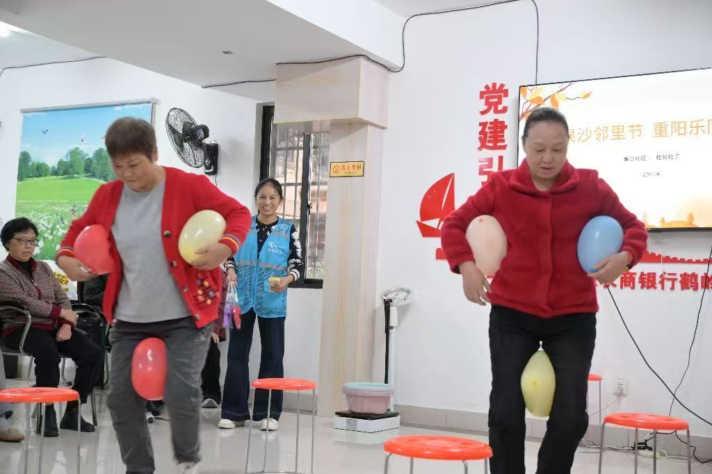 华声在线10月30日讯(通讯员 李文鑫 潘红艳)欢笑声、喝彩声、歌声此起彼伏。在重阳节来临之际,湘潭市雨湖区果沙社区别出心裁,将传统敬老之情与时尚趣味运动相结合,举办了一场别开生面的“乐享重阳”游园会。活动以一系列创意十足的游戏为主线,吸引了众多居民热情参与,现场化一片欢乐的海洋,让老年朋友们在运动的乐趣中焕发青春活力,收获满满的幸福感。
