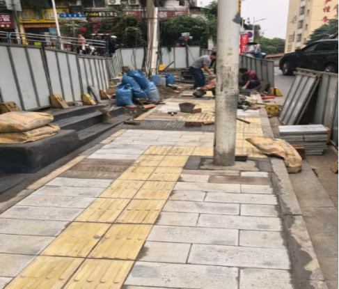 施工过程中,城管局市政部门坚守“安全第一、民生优先、服务营商”原则,对原有狭窄人行道进行拓宽改造,选用防滑耐压环保地砖铺设,同步完善无障碍通道保障特殊群体出行;通过科学调整施工工期,避开师生上下学及周边商户经营高峰时段作业,最大限度减少对教学秩序、交通通行和商户经营的影响。