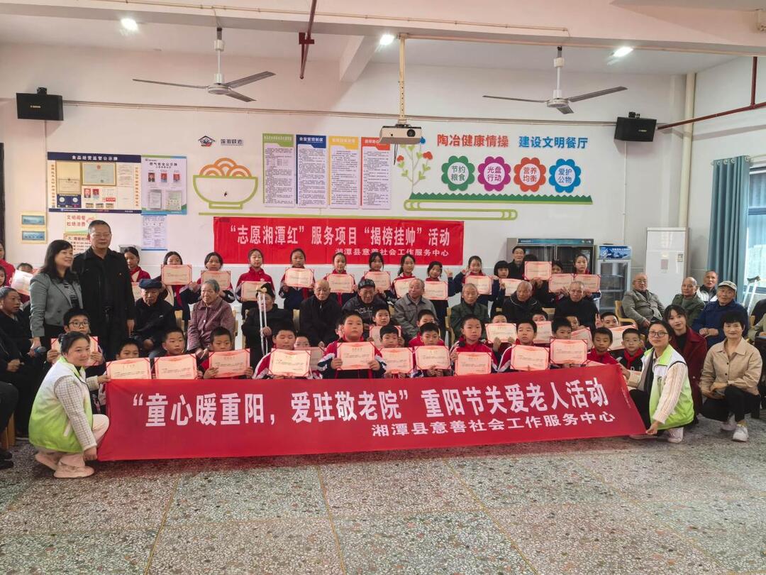 华声在线10月31日讯(通讯员 易素玉 谢美华)为大力弘扬中华民族尊老敬老的传统美德,重阳佳节期间,在湘潭县社工部及湘潭县民政局指导下,10月31日,湘潭县意善社会工作服务中心联合河口镇双板桥中心小学,走进湘潭县失能人员集中照护中心(河口镇敬老院),成功举办“童心暖重阳,爱驻敬老院”主题关爱活动。这是湘潭县意善社会工作服务中心自揭榜挂帅“我爱湘潭我的家·志愿湘潭红”老年人志愿服务项目以来的又一次落地实践。
