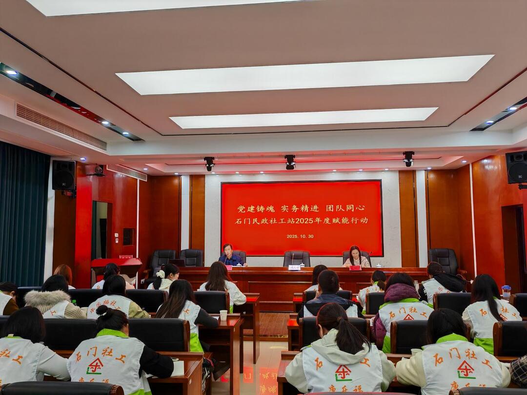 华声在线11月4日讯(通讯员 邹芳 谭紫依)为深入落实《关于落实石门县民政社工站2025-2026年度专业任务的通知》要求,进一步巩固前期工作成果、破解实务难题,持续提升石门县民政社工团队专业素养与协作效能,近日,石门县康乐福居家养老服务中心在县民政局指导下,组织32名专职驻站民政社工赴澧县彭山景区开展“党建铸魂・实务精进・团队同心”综合赋能活动。活动伊始,开班仪式如期举行,为本次综合赋能活动拉开序幕。