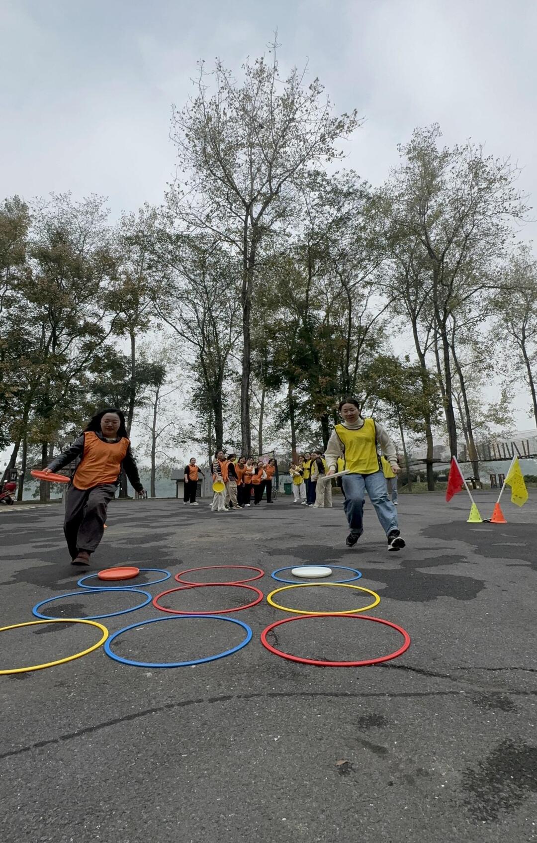 活动伊始,专业教练带领全体社工开展“破冰”互动。从“名字接龙”的快速相识,到“小组创意比拼”的脑力碰撞,社工们迅速放下拘谨,以小组为单位设计专属队名、口号与队形——有的小组以“橙心诚意”为名,取“诚心”谐音,搭配双手比心的队形与“诚心诚意,为民服务”的口号,将社工“用心服务、真诚帮扶”的初心直观呈现;有的小组打造“星火联盟”,队员们手拉手围成火焰造型,喊出“星星之火,可以燎原”的口号,既传递出“个体微光汇聚团队力量”的拼搏姿态,也呼应了民政社工扎根基层、温暖群众的使命。随后的团队挑战项目将氛围推向高潮。飞盘数字游戏中,各小组需通过默契配合,在规定时间内按顺序触碰场地数字,队员们奔跑、呐喊、及时补位,在一次次调整策略中学会“倾听与配合”;三步棋对抗赛里,大家围坐棋盘前共同分析局势,有人负责制定战术,有人专注执行落子,在输赢较量中领悟“分工与协作”的重要性;十人叠积木项目更是考验团队协同的“试金石”,从搭建方案讨论到双手同步发力,任何一人的失误都可能导致积木倒塌,社工们屏气凝神、相互提醒,最终在共同努力下完成搭建目标,现场响起的阵阵欢呼声,正是团队凝聚力的生动体现。