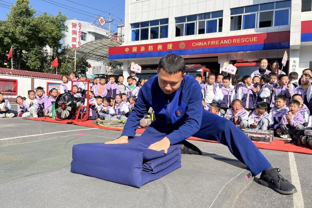 活动伊始,孩子们被带入特别的“课堂”。消防宣传员将火灾报警、火场逃生等知识变成了一个又一个闯关小任务。一个个问题抛出来,孩子们争先恐后地举手,在抢答与互动中,安全的种子悄然播下。这堂“消防安全课”成了一场消防知识的冒险游戏。
