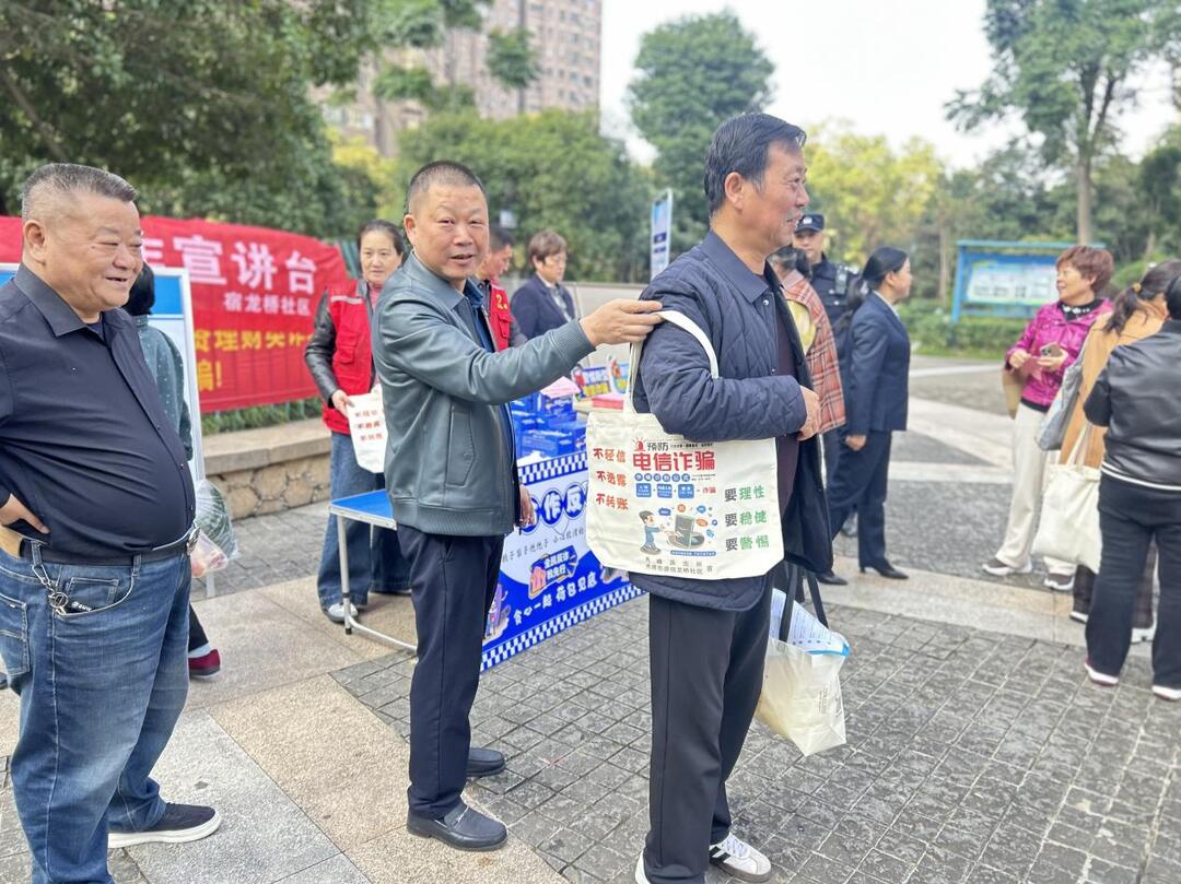 “这个纸巾盒天天用,‘十个凡是’看几遍就记熟了,出门买菜拎着印着防诈标语的环保袋,邻居还问我哪里领的呢!”居民张叔叔拿着宣传物料笑着说。现场同步发放的宣传手册,也清晰梳理了医保流程与诈骗类型,方便居民后续查阅。在互动答疑环节,居民们踊跃提问,就日常生活中遇到的疑似诈骗场景向民警咨询,民警逐一耐心解答,进一步强化了居民的反诈认知。