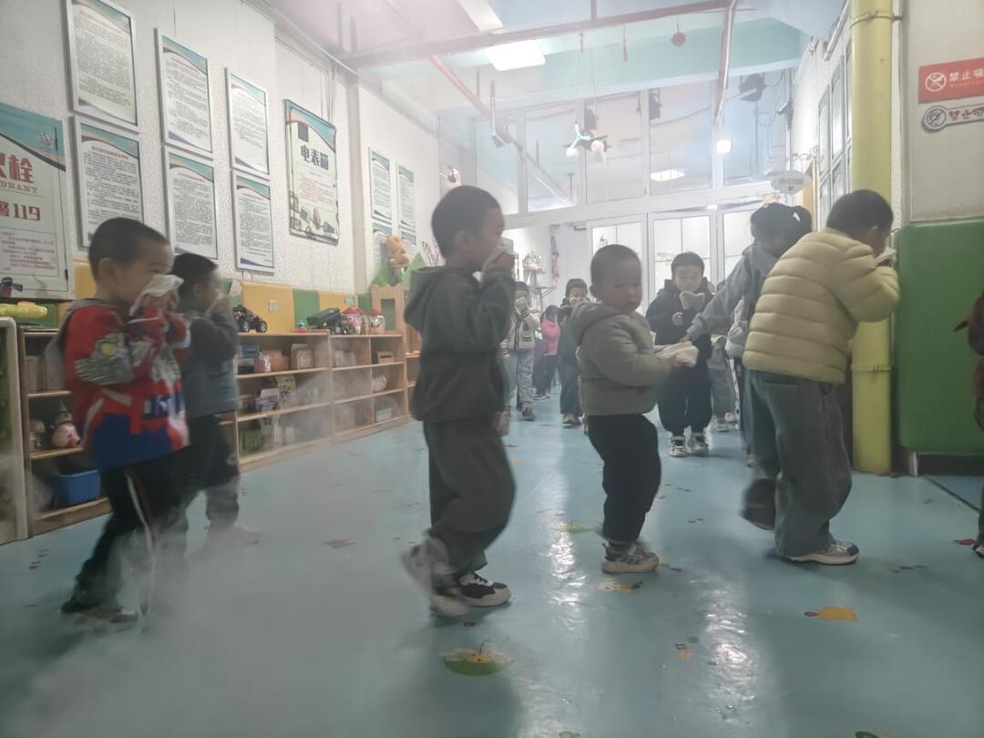 随着急促的警报声响起,消防演练正式拉开帷幕。各班级教师迅速反应,立即停止一切活动,组织孩子们用湿毛巾捂住口鼻,弯腰低姿,沿着预定的疏散路线,快速、有序地撤离教室。楼梯口、转弯处,后勤保障人员早已就位,指引疏导,确保通道畅通无阻。整个撤离过程紧张而不慌乱,仅用时不到3分钟,全体师幼便已安全抵达指定集合区域。