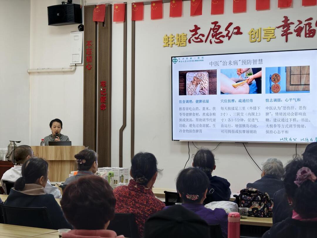 华声在线11月13日讯(通讯员 陈玲)为提高社区居民对糖尿病的防治意识,推广中医养生保健知识,11月13日上午,长沙市开福区东风路街道社区卫生服务中心联合蚌塘社区居委会在蚌塘社区老党员之家成功举办了一场以“糖尿病与幸福感”为主题的联合国糖尿病日健康讲座与义诊活动。此次活动作为国家基本公共卫生服务项目的具体实践,旨在将惠民服务与专业健康指导送到居民“家门口”,吸引了近60位居民踊跃参加。