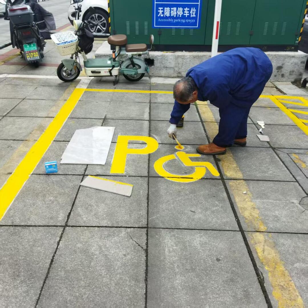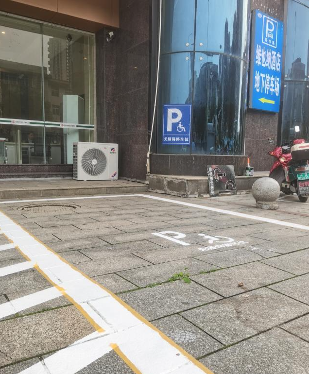 上图为完善维也纳酒店前坪施划的无障碍停车位图片