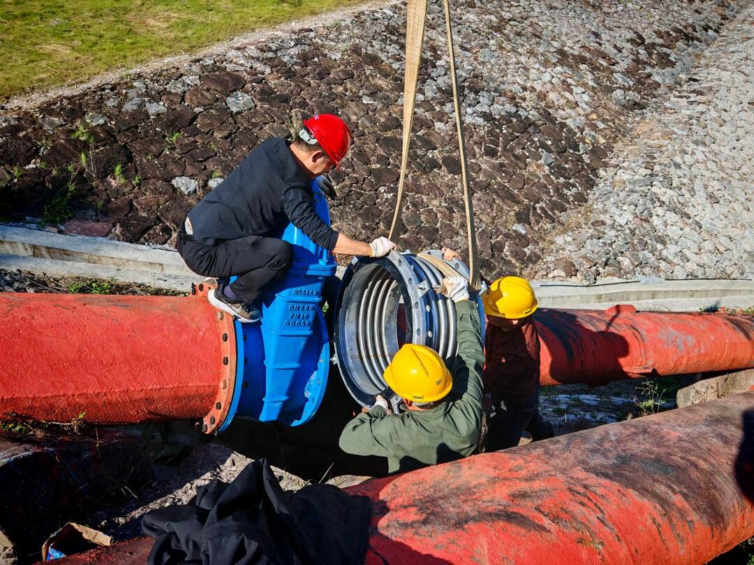 “上,下,左,右,停”,施工人员喊着“位置对齐了,螺丝拧紧了……”全体人员紧密协作、规范操作,从旧阀门的拆除吊离,到新阀门的精准对位、垫片安装与螺栓紧固,各个环节安全有序、衔接顺畅。经过3小时19分的连续奋战,阀门“置换手术”较原计划提前一个多小时圆满完成。随着总闸重启,供水系统迅速恢复正常运行状态。