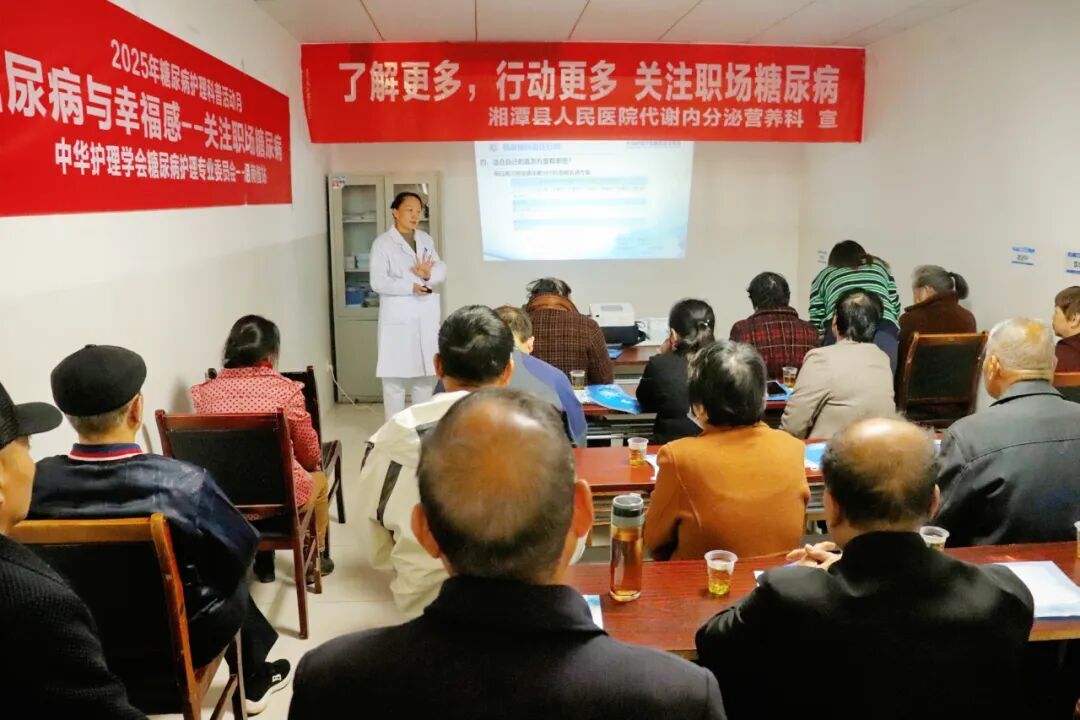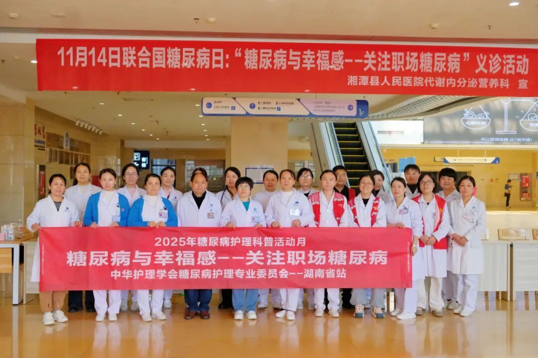 华声在线11月18日讯(通讯员 周洁)2025年11月14日是第19个“联合国糖尿病日”,今年主题聚焦“糖尿病与幸福感——关注职场糖尿病”。为提升公众糖尿病认知、助力糖友科学管理健康,湘潭县人民医院代谢内分泌科联合基层卫生服务办公室,于11月14日至15日开展了系列主题活动,以知识科普、互动体验与专家义诊相结合的形式,为糖友们送上健康关怀。