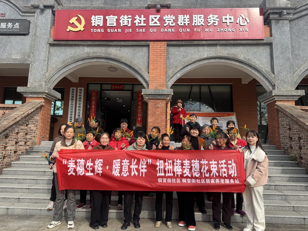 华声在线11月20日(通讯员 邓莎丹 邓思)为丰富社区老年人的精神文化生活,弘扬孝亲敬老传统美德,11月20日上午,长沙市望城区铜官街道铜官街社区、铜官街社区居家养老服务站以“麦穗生辉·暖意长伴”为主题,组织开展了扭扭棒麦穗花束手工制作活动。活动吸引了30余名社区老年人及家属参与,现场欢声笑语不断,暖意融融。