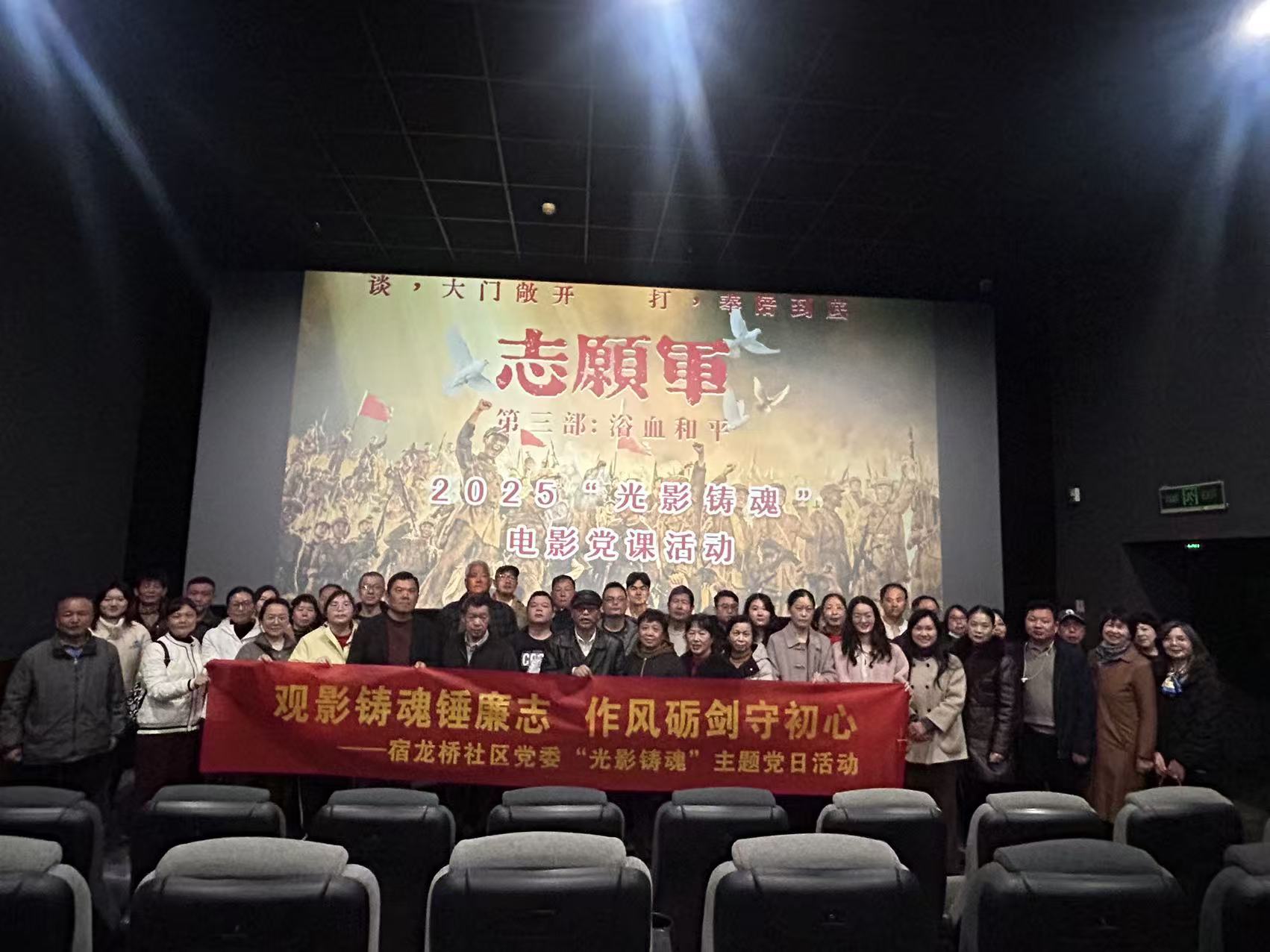 华声在线11月21日讯(通讯员 刘银)为深入推进党建引领与廉洁文化建设深度融合,丰富党员教育形式,凝聚奋进力量,11月21日下午,长沙市开福区秀峰街道宿龙桥社区党委以“观影铸魂锤廉志 作风砺剑守初心”为核心主题,联合长沙金霞保税物流中心、长沙市水运事务中心和长沙汽车检测站有限公司三家党建结对共建单位,组织全体党员及流动党员开展“光影铸魂”主题党日活动,集中观看红色经典影片《志愿军:浴血和平》,让党员们在光影浸润中接受党性淬炼与廉洁熏陶。