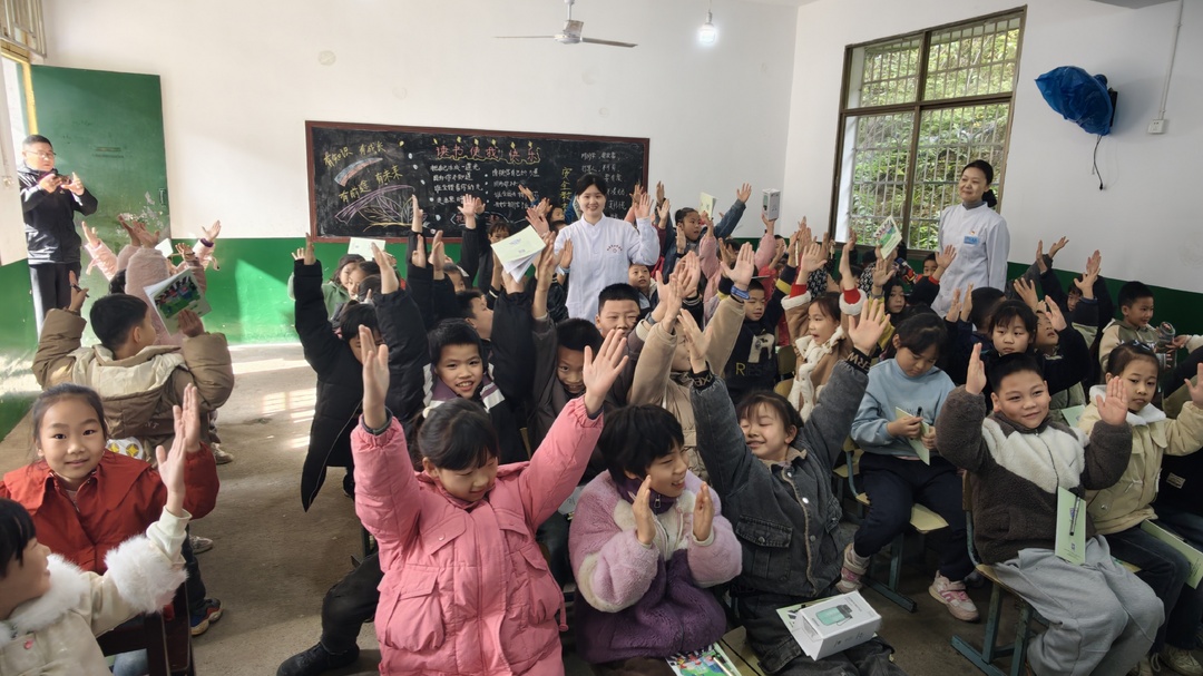 健康讲座结束后,市口腔医院的党员医疗团队和易俗河镇卫生院梅林桥分院分别为全校学生开展了免费口腔义诊和身高体重测量。同时,市健教所现场发放了小学生健康知识读本,并捐赠了一批健康科普材料和健康支持性工具,进一步普及健康知识,引导师生养成良好的健康习惯。