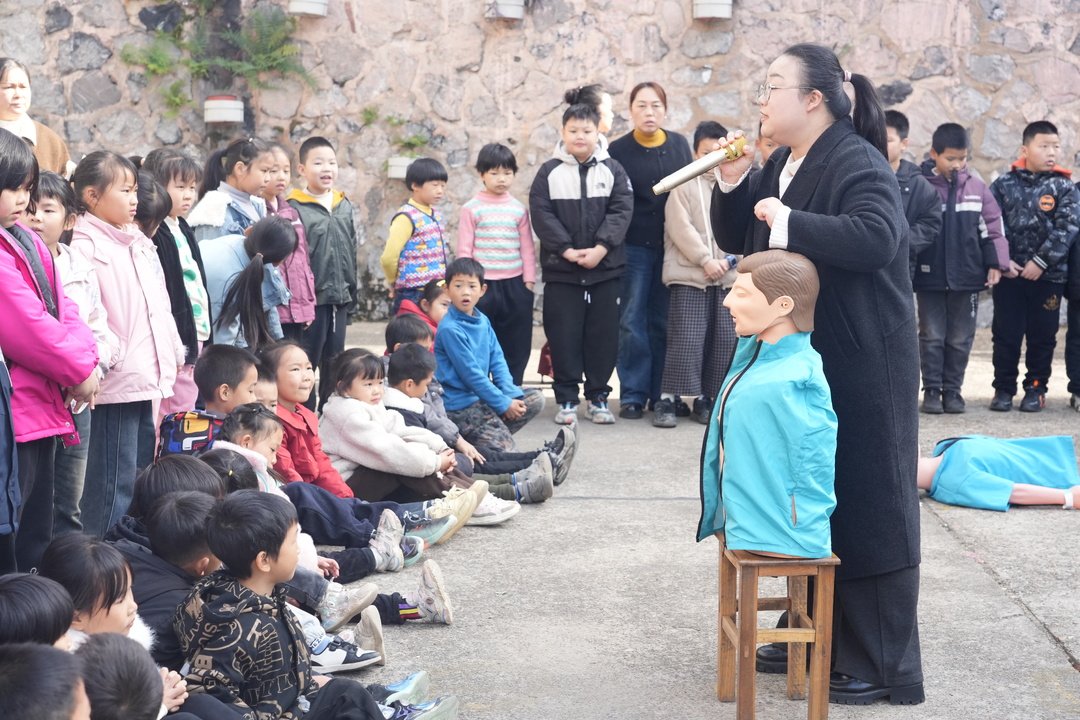 随后,市医卫职院附属医院护理部主管护师张兵聚焦心肺复苏急救知识在室外开展授课。以通俗易懂的语言,强调“黄金四分钟”重要性,详细演示环境评估、意识判断等心肺复苏全流程,针对儿童急救特点说明关键要点,还通过口诀帮助师生记忆,让急救知识入脑入心。