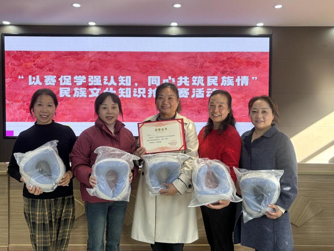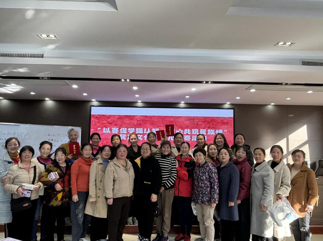 线下气氛热烈,竞赛深化认知。线下,社区以“以赛促学强认知,同心共筑民族情”为主题,精心组织系列活动。活动在激昂嘹亮的《爱我中华》合唱声中拉开帷幕,各族居民用真挚的歌声,抒发了对伟大祖国的深切热爱。合唱结束后,知识抢答赛接踵而至。6支参赛队伍,围绕民族政策、各民族风俗习惯及文化特色等进行互动问答。这场沉浸式的竞赛体验,不仅丰富了居民们的民族文化知识储备,更让民族团结的理念深入人心。
