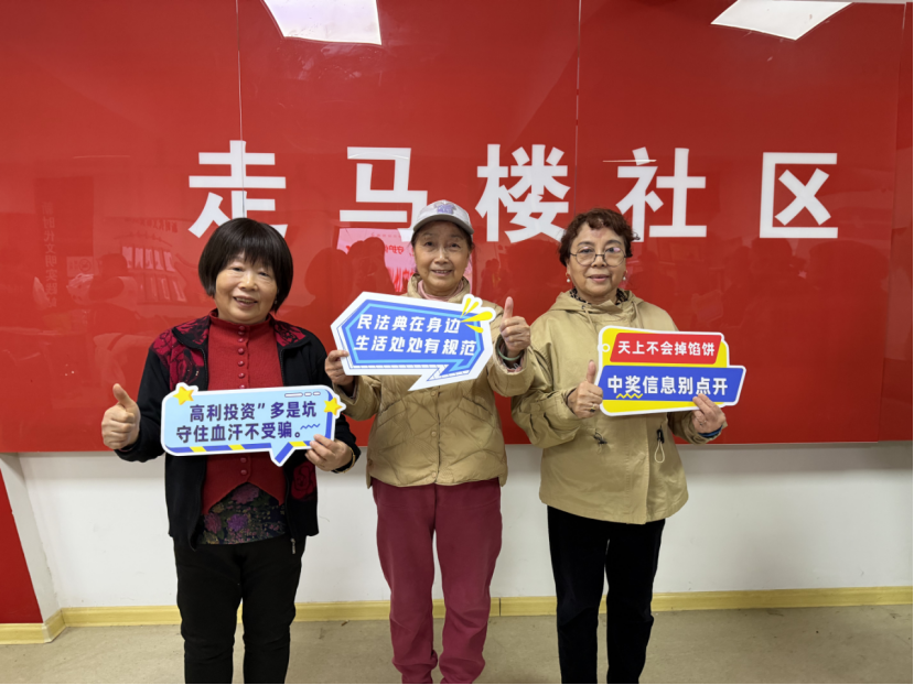 活动现场精心设置“法治打卡”“普法大富翁”“法治大转盘”“法律咨询角”“普法宣传台”五大互动板块,内容精准覆盖老年人日常生活中常见的民事纠纷、消费维权、防诈骗、居家安全等法律热点与安全重点问题。“这个‘大富翁’游戏真有意思,掷骰子答问题,不知不觉就把遗产继承的法律知识记住了!”刚完成闯关的张奶奶拿着集齐的印章,笑着前往礼品兑换处。现场氛围持续升温,长者们积极参与游戏闯关,在问答互动中提升自我保护能力,参与热情高涨。