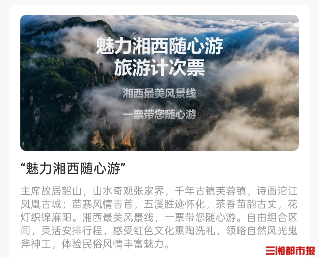 “魅力湘西随心游”在去年广受欢迎的“长沙—凤凰古城—张家界”计次票产品基础上,进一步扩容升级,新增韶山南、怀化南、麻阳西、吉首东、古丈西、芙蓉镇等站点,深度整合铁路资源与湘西文旅精华,尽览湘西最美风景线。