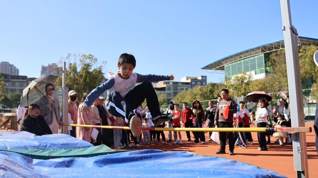 田赛区域同样精彩纷呈。跳高场地,运动员们助跑、起跳、腾空、过杆,动作一气呵成,不断挑战新的高度;跳远沙坑前,一道道矫健的身影奋力跃起,在空中划出优美的弧线;实心球和垒球项目则展现了力量与技巧的完美结合。此外,一分钟跳绳项目考验着选手们的速度、耐力与节奏感,翻飞的跳绳与跳跃的身影构成了一幅动感的画面。