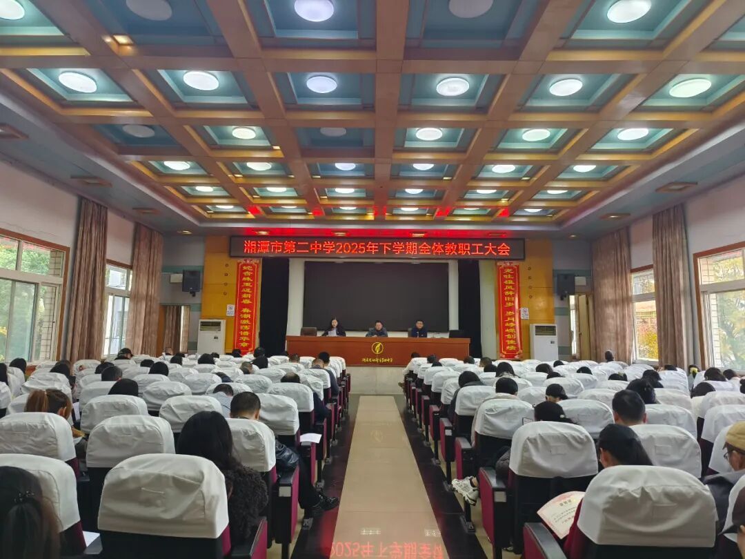 华声在线12月2日讯(通讯员 彭嘉祺)为全面总结学期过半以来的各项工作,梳理成效、查摆不足,明确后续工作方向,凝聚全校教职工育人合 力,推动学校教育教学高质量发展,11月28日,湘潭市第二中学召开2025年全体教职工大会。