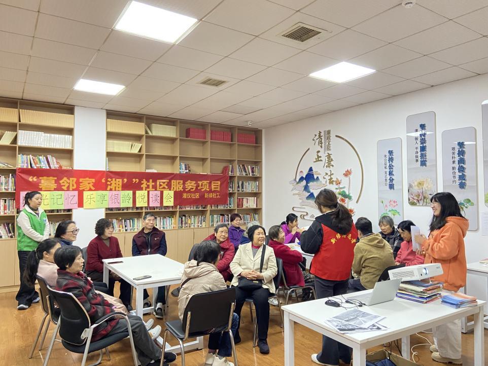 华声在线12月2日讯(通讯员 刘花艳)11月28日上午,湘江新区望城坡街道湘仪社区图书室暖意融融,由湘仪社区联合新绿社工、湖南师范大学文学院青工部共同开展的“时光记忆,乐享银龄”悦读会温馨启幕,二十位社区老人与大学生志愿者围坐一堂,在怀旧旋律与经典共读中重温往昔岁月,传递人生智慧,为社区文化生活注入温暖活力。