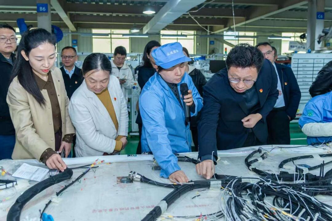 走进众连线束股份有限公司生产车间,生产线有序运转,呈现勃勃生机。党员们边走边看,详细了解产品工艺、技术创新与市场应用情况,并就企业扩产可能涉及的用地与人才安居需求,现场开展政策解读与互动答疑,将“微课堂”融入调研实境,提升服务针对性。
