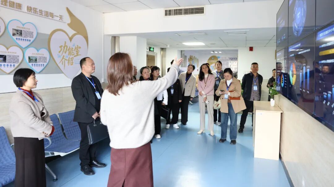 医院党委副书记、副院长胡敏陪同雨湖区卫健系统领导、专家一行,先后参观了公立医院改革和高质量发展示范项目成效展板、“五医·医者红”直播间、“医者红”党员服务中心、心理健康促进中心等特色阵地,详细介绍了“五医·医者红”党建品牌在重点专科建设、科研创新突破、人才队伍培育、为民服务提质等方面的融合实践与成效经验,展现出“党建+业务”协同共鸣的发展局面。