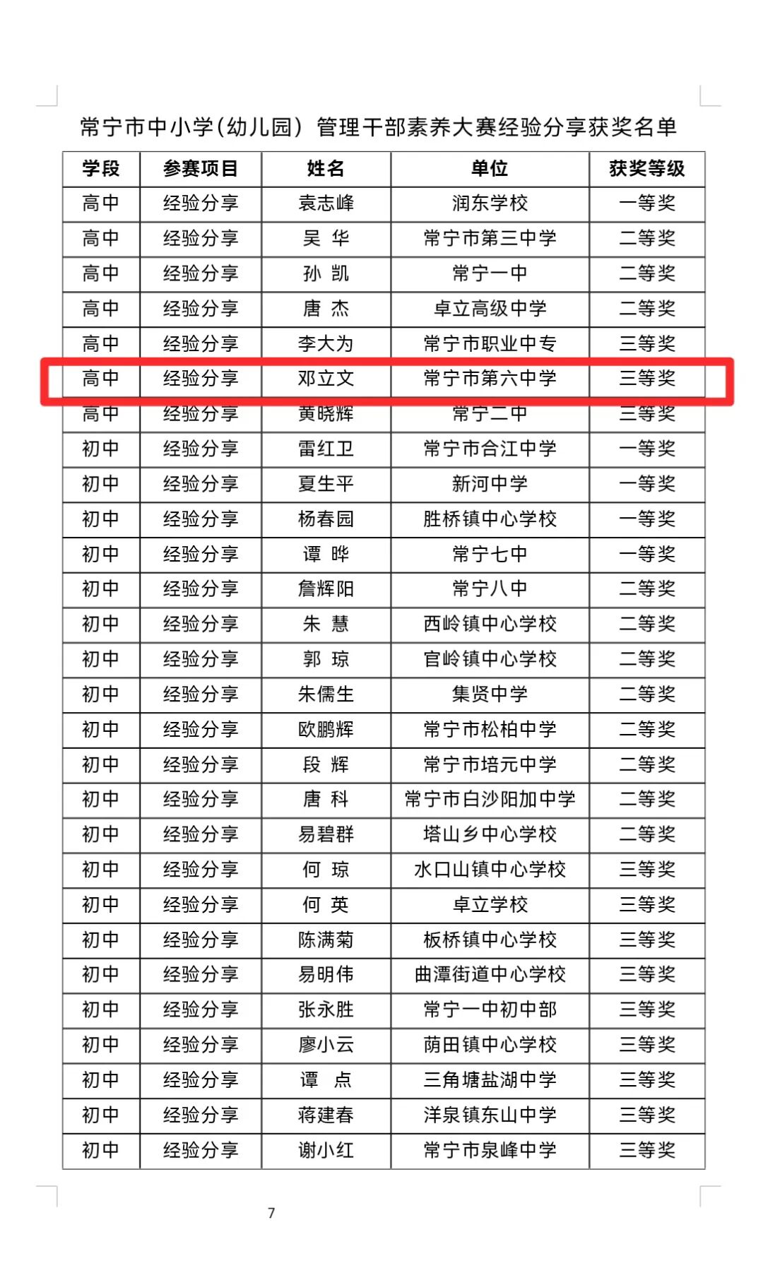 常宁六中邓立文老师荣获“经验分享组”三等奖