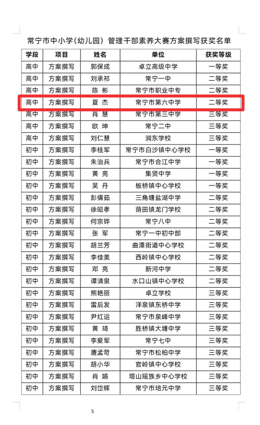 常宁六中夏杰老师荣获“方案撰写组”二等奖