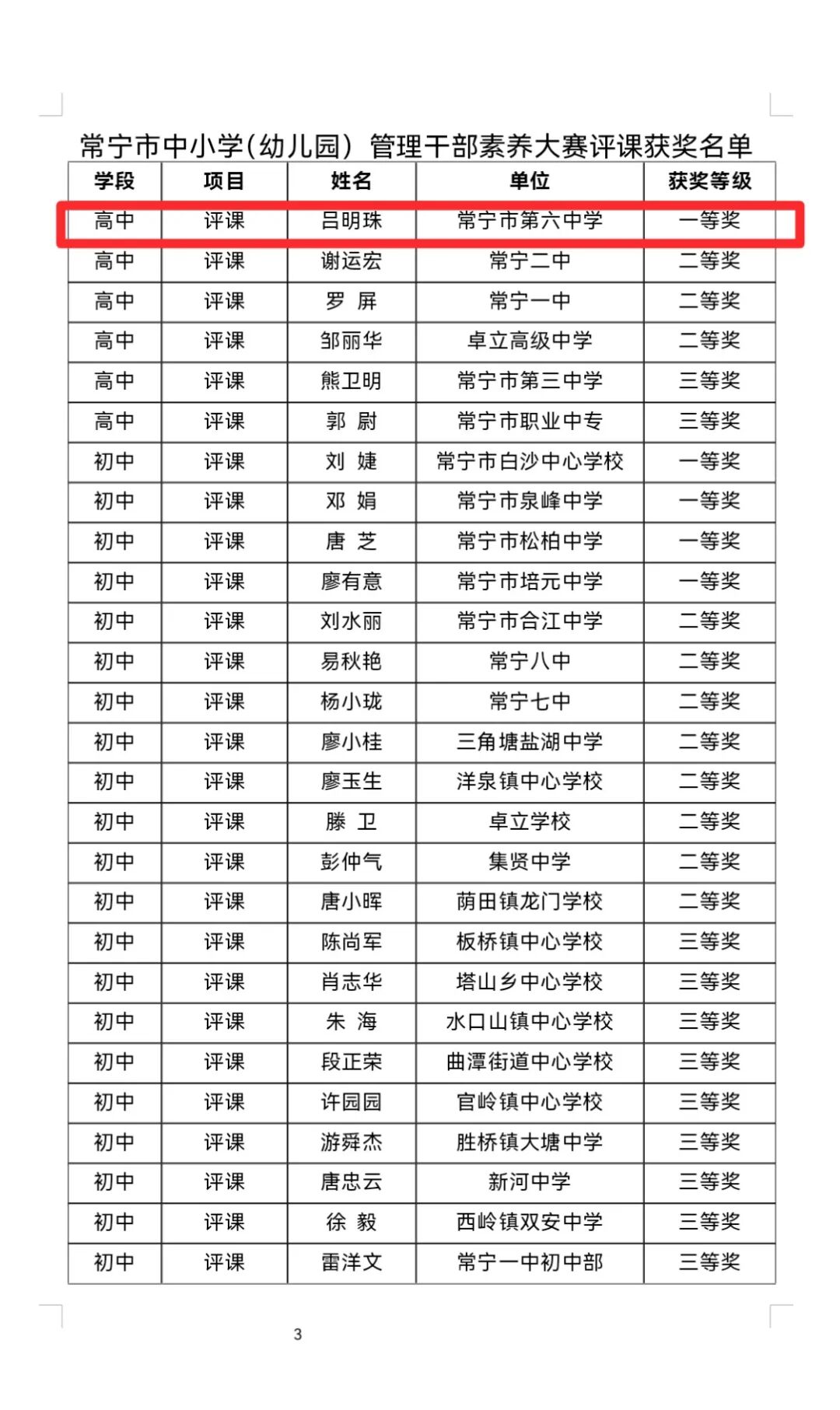 常宁六中吕明珠老师荣获“评课组”一等奖