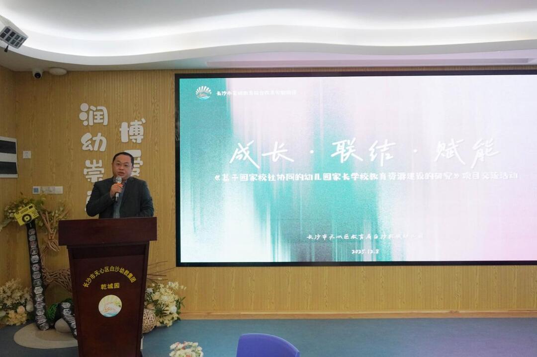 华声在线12月11日讯(通讯员 续晓旋)2025 年 12 月 8 日,长沙市基础教育综合改革实验项目《基于园家校社协同的幼儿园家长学校教育资源建设的研究》交流活动暨白沙幼教集团园家校社协同共育主题研讨在天心区教育局白沙乾城幼儿园三楼多功能室成功举办。市级项目专家、项目组成员、幼儿园教师代表、幼儿家长代表、社区代表,白沙幼教集团各园园长们齐聚,共鉴项目核心成果,共探协同育人新路径。