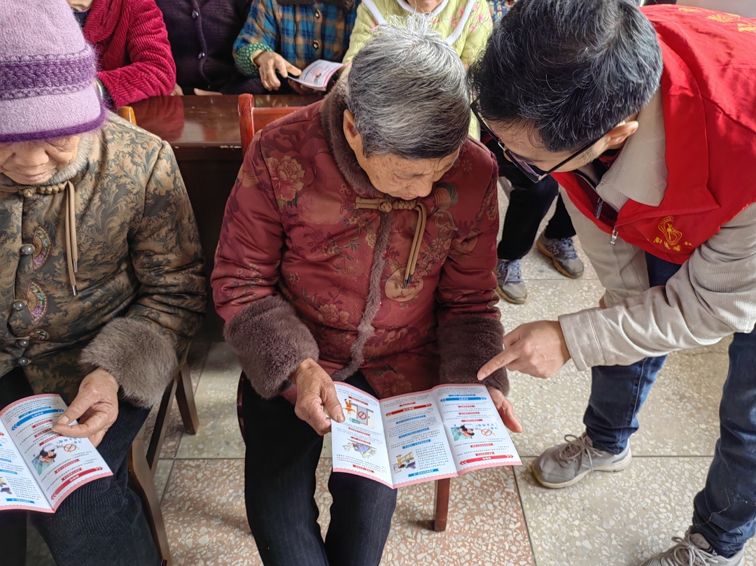另一边,社工与志愿者们向村民发放家庭安全手册,用通俗易懂的语言讲解防火、防电、防诈骗等居家安全知识,耐心解答村民疑问,助力提升家庭安全防护意识。同时,工作人员还为参与活动的村民送上包含香皂盒、保暖耳罩、沐浴露等洗护及保暖用品的物资礼包,实用的物品让村民们感受到冬日里的浓浓暖意。