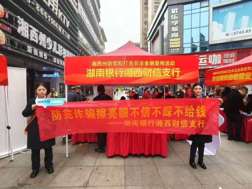 活动现场,湖南银行湘西财信支行通过设立咨询台、摆放宣传展板、发放宣传折页、现场讲解等多种形式,向过往市民生动普及非法集资、电信网络诈骗、虚拟货币交易炒作、非法校园贷等常见非法金融活动的特征、危害及识别方法。宣传人员结合真实案例,用通俗易懂的语言揭露相关作案手法与社会危害,引导公众树立理性投资理念,自觉远离和抵制各类非法金融活动。针对电信网络诈骗等易发案件,支行工作人员重点关注老年群体、学生、个体工商户等重点人群,深入讲解“保本高息”“虚拟投资”“征信修复”等常见诈骗话术,提醒大家妥善保护个人金融信息,牢记“不轻信、不转账、不泄露”,通过正规金融机构办理业务,切实守好自己的“钱袋子”。