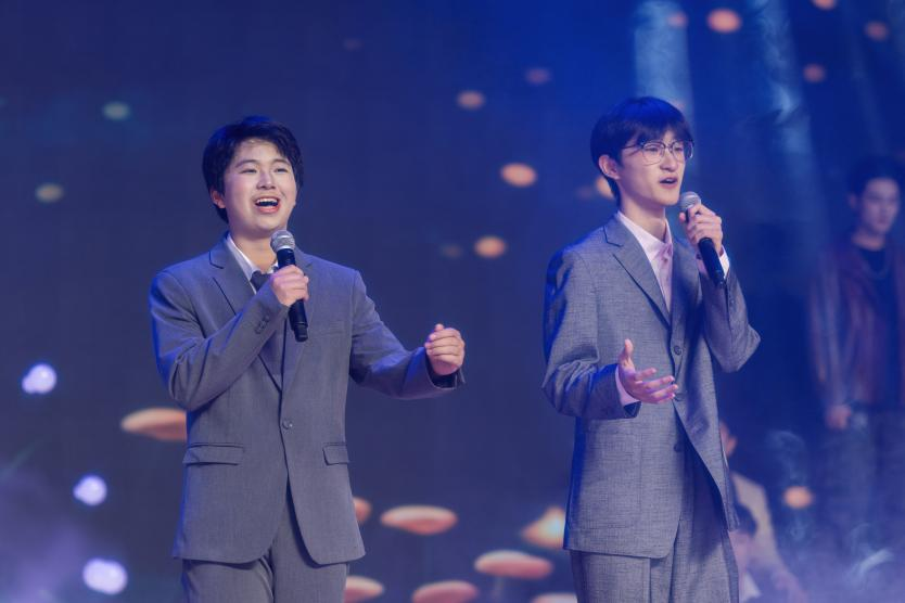 2512班刘禹希同学和彭子溢同学为大家带来了深情合唱《传奇》。他们的歌声穿越岁月,温暖人心,让现场观众感受到经典的魅力。