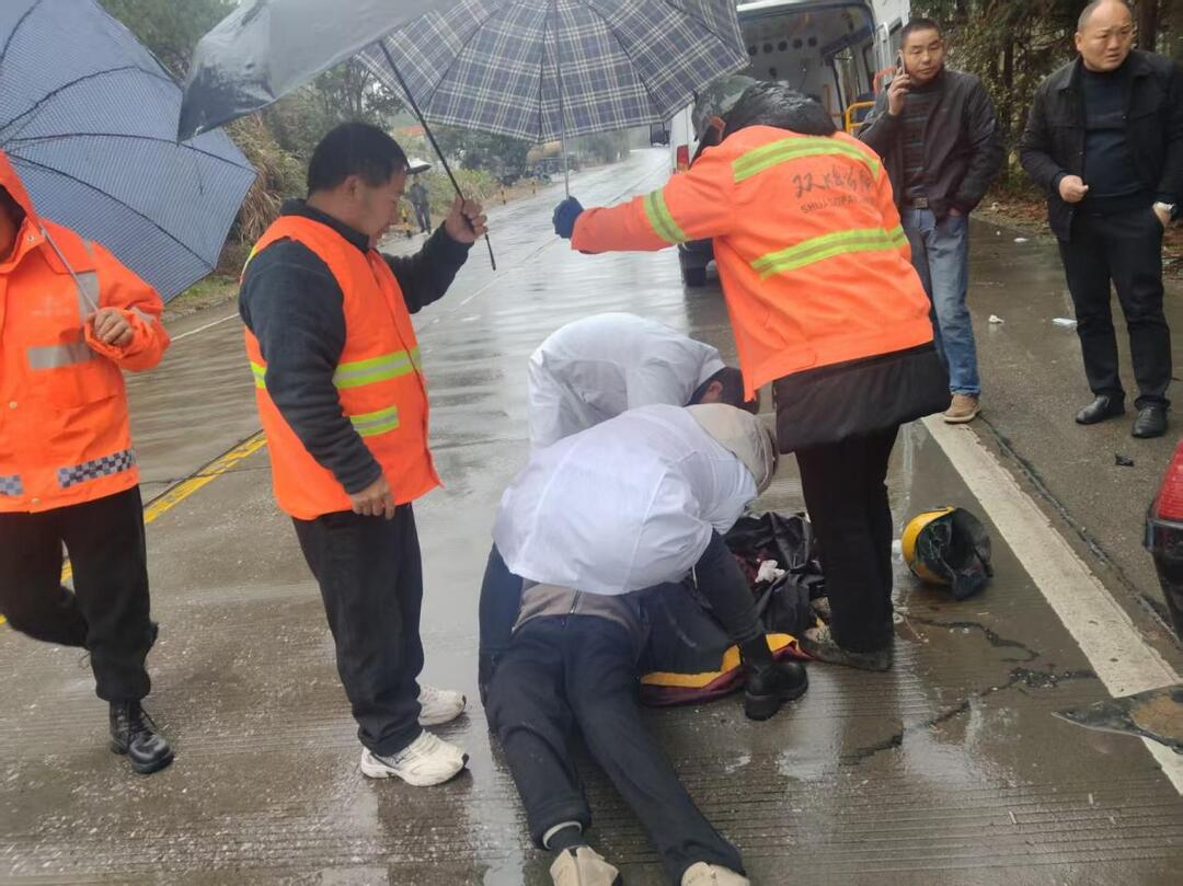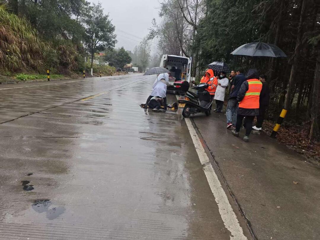 当日上午,茶林养护工班班长李跃宏带领队员朱胡琼、邓春娥,严格按照日常工作部署,对S230线双牌段开展常态化路面巡查及养护作业,细致排查路面坑槽、交安设施缺损等通行隐患,全力保障辖区路段安全畅通。巡查至途中关键路段时,众人突然发现前方路面有一辆摩托车侧翻倒地,一名群众蜷缩在路边,膝盖、手掌多处被路面擦伤,正因疼痛无法自主起身,情况较为紧急。