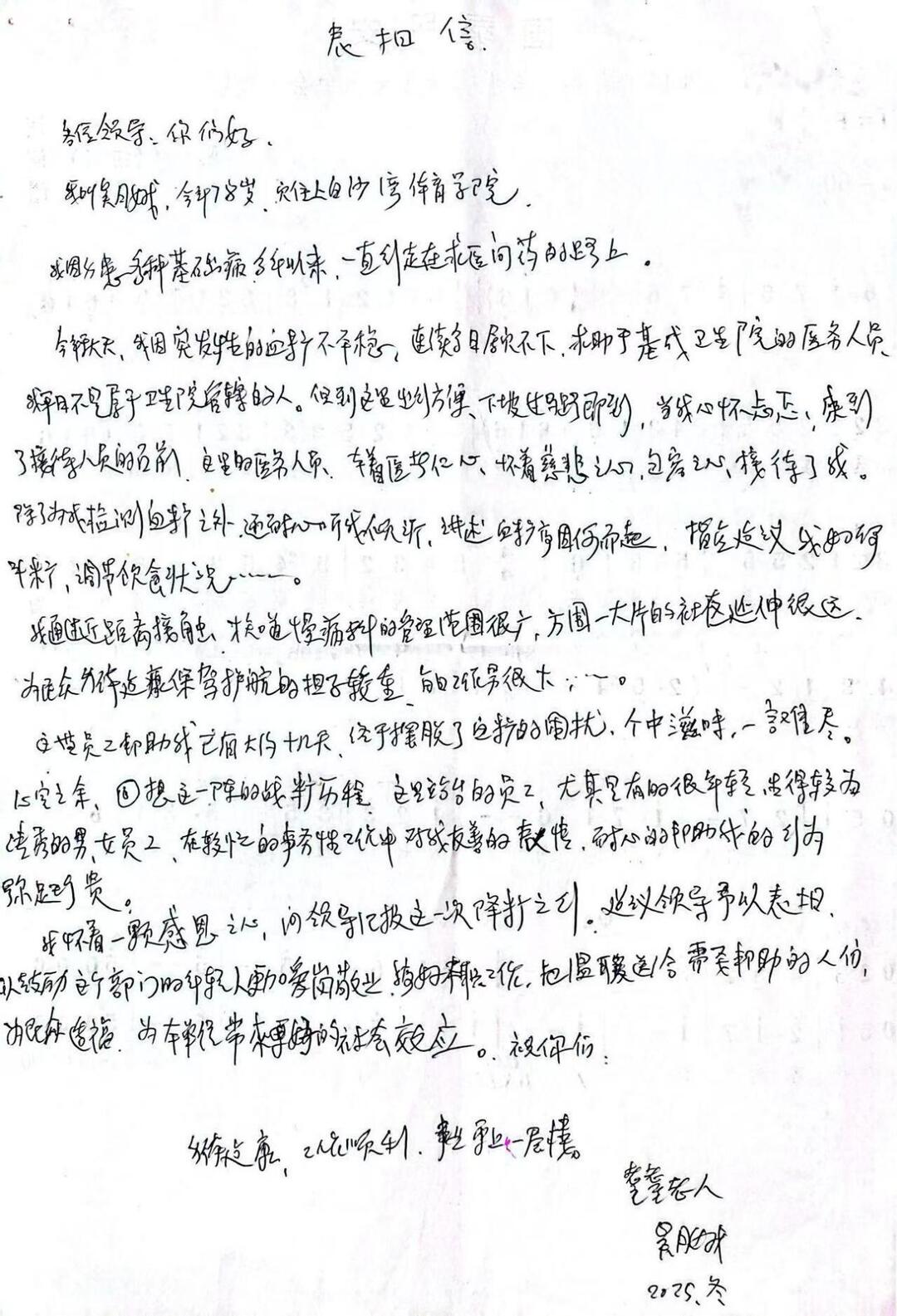 通过这次近距离接触,吴奶奶才了解到,慢病管理科的服务范围覆盖周边大片社区,工作量大、责任重,是为居民健康“保驾护航”的重要防线。她在信中特别提到,科室里那些年轻的医护人员,即使在繁忙的工作中,也始终面带友善、耐心细致,让她倍感温暖。