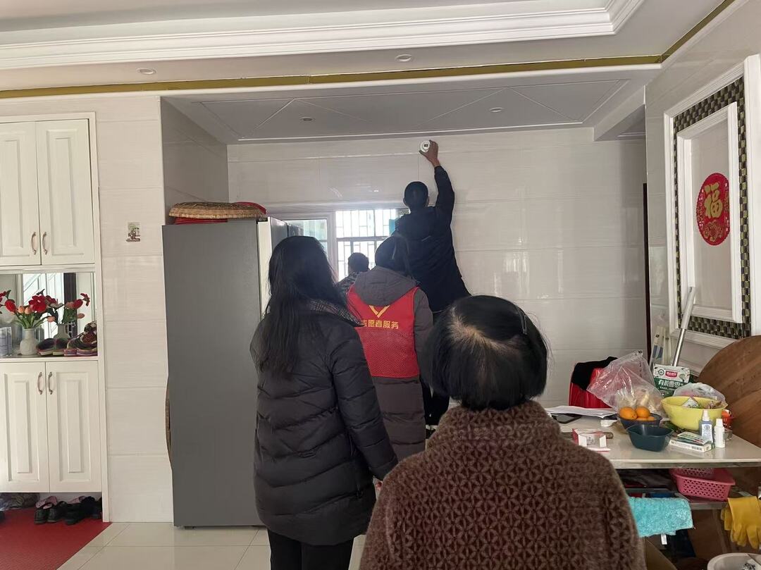 专业技术人员逐户上门,根据老人居所布局制定个性化安装方案,快速完成设备安装与调试,并耐心讲解报警器使用方法、报警流程及日常注意事项。与传统报警器不同,该联网设备触发后,不仅现场发出高分贝警报,还会同步向消防平台、老人亲属手机推送报警信息,实现“现场报警+远程预警”双重保障,为救援争取宝贵时间。