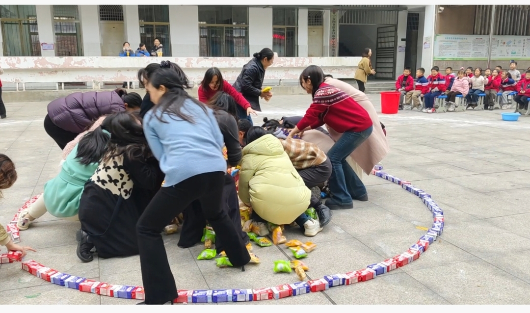经过一番激烈角逐,老师们都满载而归,将满满当当的零食礼包送到孩子们手中。看着孩子们捧着零食时灿烂的笑容,老师们也露出了欣慰的笑容。孩子们一边分享美味的零食,一边兴奋地讨论着老师们比赛时的精彩瞬间,整个校园都沉浸在欢乐祥和的迎新氛围里。